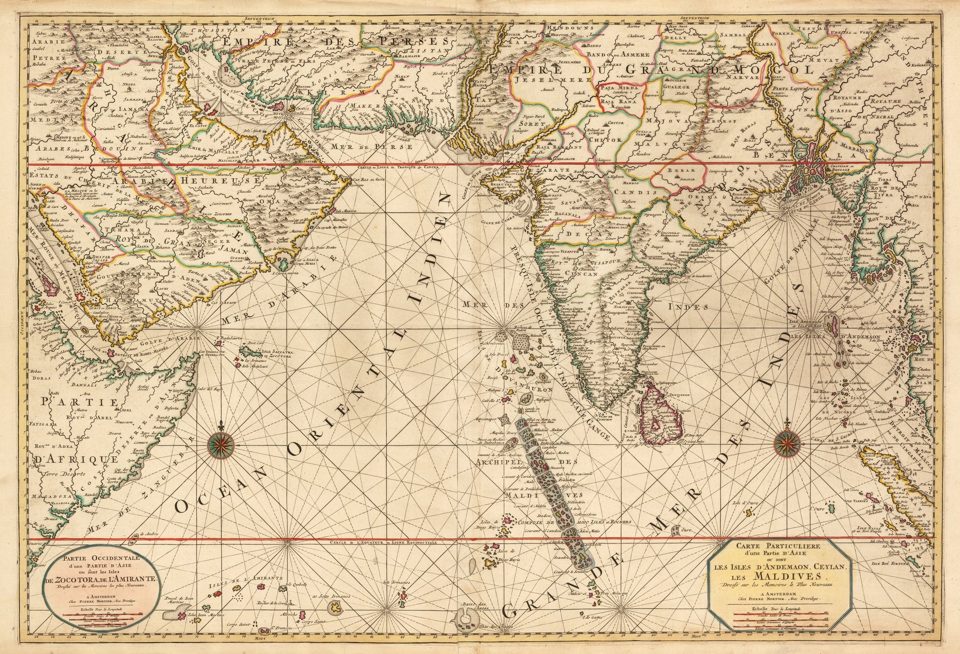 This is a fine print reproduction of a fantastic example of Mortier¡¯s map of the Asian Subcontinent, Arabian Peninsula, and Horn of Africa.